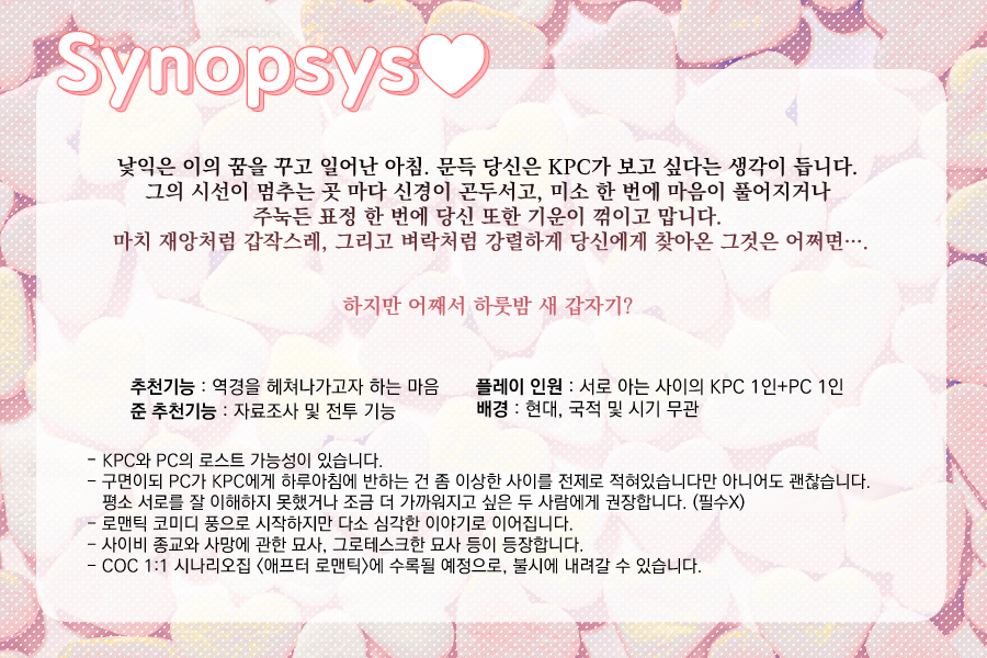 | COC 1:1 Scenario Book <미드나잇 시네마 클럽> 통판 공지 (0) | 2024.09.20 |